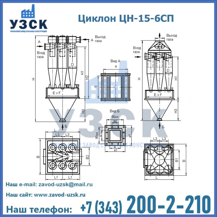 Завод «УЗСК» в Ставрополе предлагает большой выбор циклонов ЦН-15-700×6СП и прочих устройств, полностью укомплектованных и готовых к эксплуатации. Мы гарантируем соответствие оборудования всем требованиям ГОСТ и ТУ, износостойкость и высокую производительность предлагаемого оборудования. Уральский Завод Стальных Конструкций изготавливает и продает надежное, эффективное и производительное оборудование, имеющее длительную гарантию и большой эксплуатационный ресурс. Если требуется изготовить циклон нестандартных размеров, то такой вариант выполнения заказа тоже предусмотрен, так как предприятие имеет собственные производственные площади и надежных поставщиков. На все поставляемое или производимое оборудование имеются чертежи и прочая техническая документация. Заказать и купить циклоны или прочее оборудование высокого качества и по доступной цене можно через наш сайт или по указанному в разделе «Контакты» телефону.