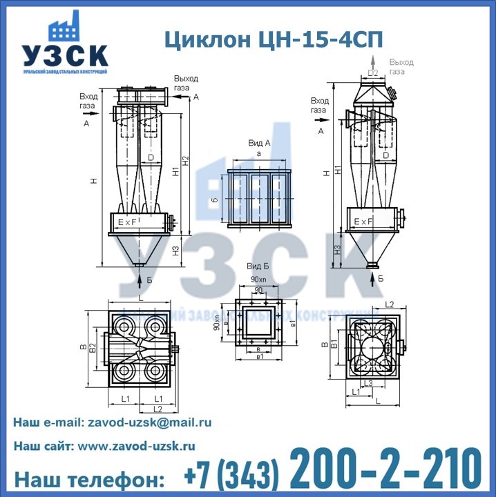 Завод «УЗСК» в Ставрополе предлагает большой выбор циклонов ЦН-15-800×4СП и прочих устройств, полностью укомплектованных и готовых к эксплуатации. Мы гарантируем соответствие оборудования всем требованиям ГОСТ и ТУ, износостойкость и высокую производительность предлагаемого оборудования. Уральский Завод Стальных Конструкций изготавливает и продает надежное, эффективное и производительное оборудование, имеющее длительную гарантию и большой эксплуатационный ресурс. Если требуется изготовить циклон нестандартных размеров, то такой вариант выполнения заказа тоже предусмотрен, так как предприятие имеет собственные производственные площади и надежных поставщиков. На все поставляемое или производимое оборудование имеются чертежи и прочая техническая документация. Заказать и купить циклоны или прочее оборудование высокого качества и по доступной цене можно через наш сайт или по указанному в разделе «Контакты» телефону.