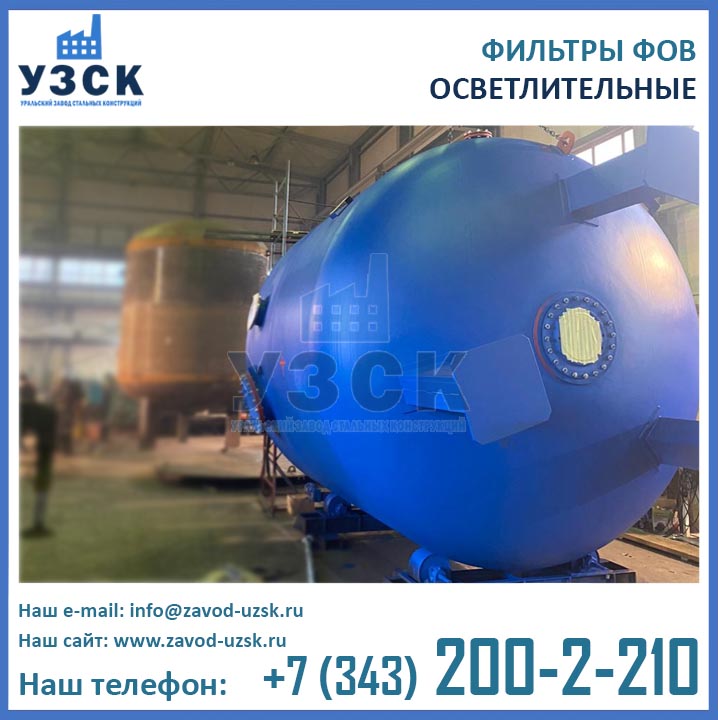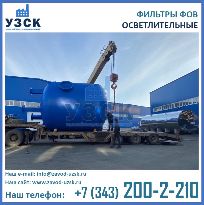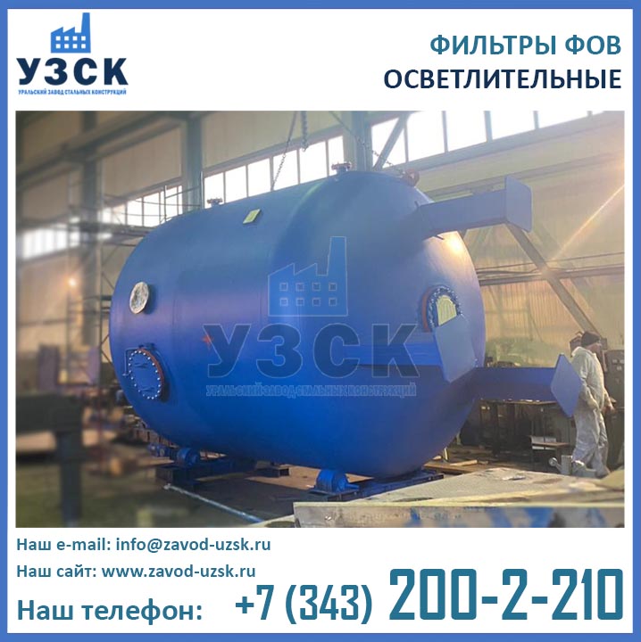 Изготовитель двухкамерных фильтров ФОВ диаметром 3,0 м с рабочим давлением 0,6 МПа — Уральский Завод Стальных Конструкций (УЗСК). Производство фильтров ФОВ2К выполняется из листовой стали. Подбор марки стали осуществляется в соответствии с условиями дальнейшей эксплуатации оборудования. Высокое качество продукции УЗСК подтверждено соответствующими документами, ознакомиться с которыми Вы можете в разделе «ДОКУМЕНТАЦИЯ» на нашем сайте. Завод УЗСК имеет все необходимое оборудование для изготовления двухкамерных фильтров ФОВ любой сложности, как типовых конструкций, так и по индивидуальным размерам и чертежам заказчика. Также наш завод располагает собственной лабораторией неразрушающего контроля и осуществляет гидравлические испытания готовой продукции на аттестованном гидростенде. При испытании фильтров ФОВ2К-3,0-0,6 дается пробное давление 0,9 Мпа (9,0 кгс/см2).