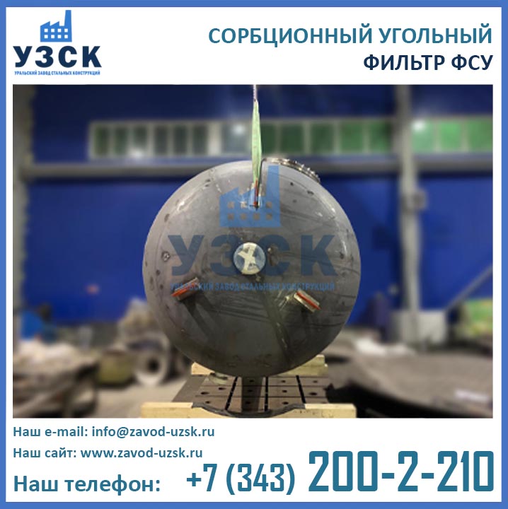 Качественную работу отопительных и промышленных котельных, линий по очистке конденсата и природных вод, электростанций обеспечивает фильтр сорбционный угольный типа ФСУ — вертикальный сосуд с одной камерой цилиндрической формы. Основное назначение оборудования состоит в глубокой очистке возвращаемого с производства конденсата от запахов, органических загрязнений и привкусов. Использование ФСУ в системах водоподготовки гарантирует очищение субстанции от масел, органических примесей, остатков нефтепродуктов до нормального значения — 0.52-1.0 мг/л. Купить в Ставрополе угольные фильтры предлагает наш Уральский завод стальных конструкций. Мы выполняем производство ФСУ под нужды предприятия, возможно изготовление сорбционных фильтров ФСУ из нержавеющей стали включая корпус и внутренние устройства.