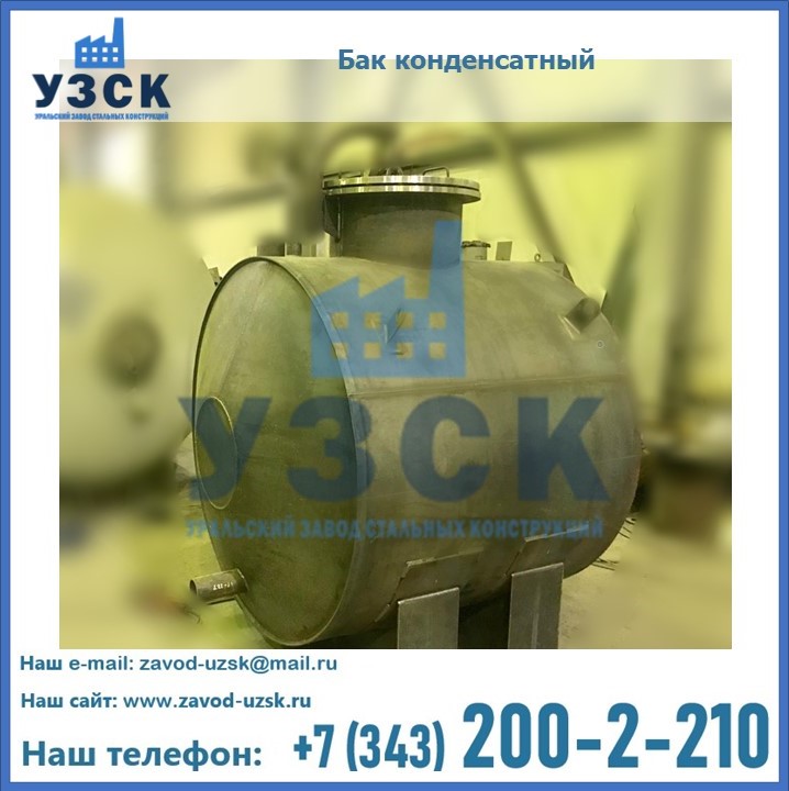 Многие заказчики стараются конденсатные баки купить по выгодной цене в компании «УЗСК» в Ставрополе. Причин несколько. Производитель поставляет емкости с полным комплектом лестниц, площадок обслуживания. Бак после гидравлических испытаний покрывают специальной внутренней и наружной краской, накладывают теплоизоляцию или наваривают крепеж для навески минматов. Условия теплоизоляции согласуются с заказчиком.